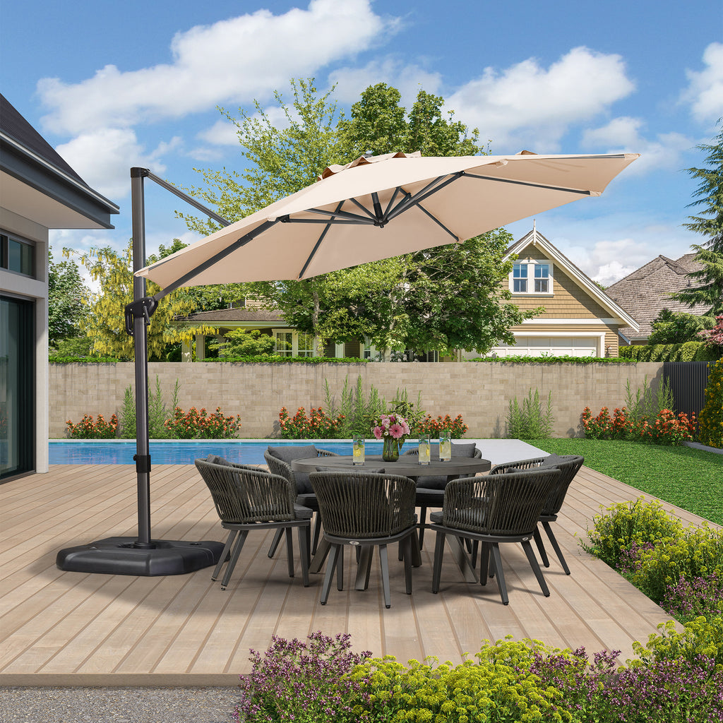 Descubra la Sombrilla de Manivela PURPLE LEAF: elegante, funcional y el refugio perfecto contra el sol para su espacio exterior.