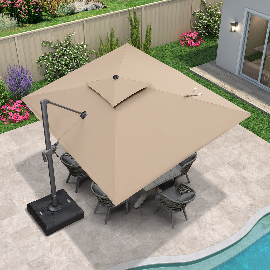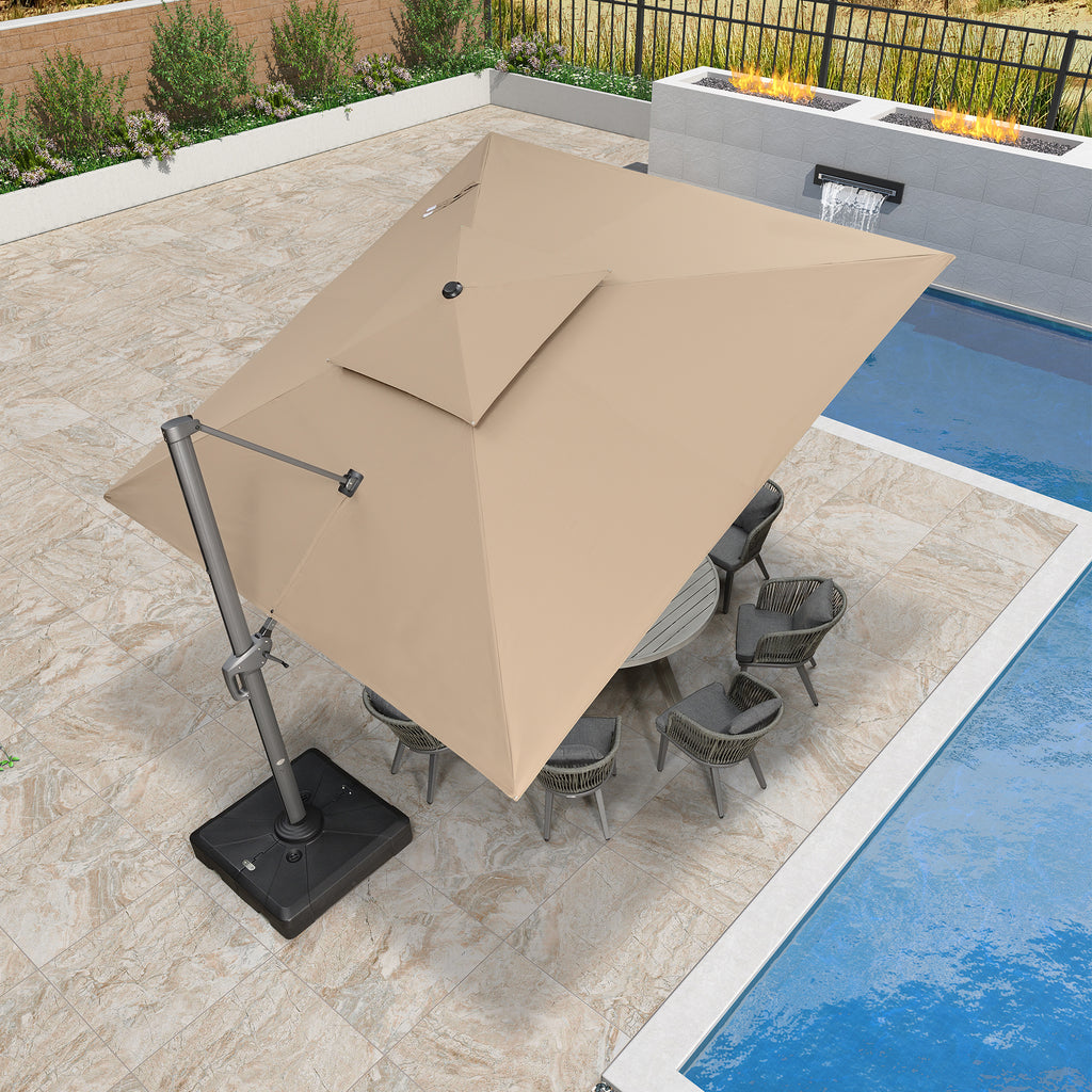 Su sistema mejorado permite una rotación de 360°, y el diseño de doble techo proporciona una ventilación superior, asegurando una sombra más fresca y confortable durante todo el día.